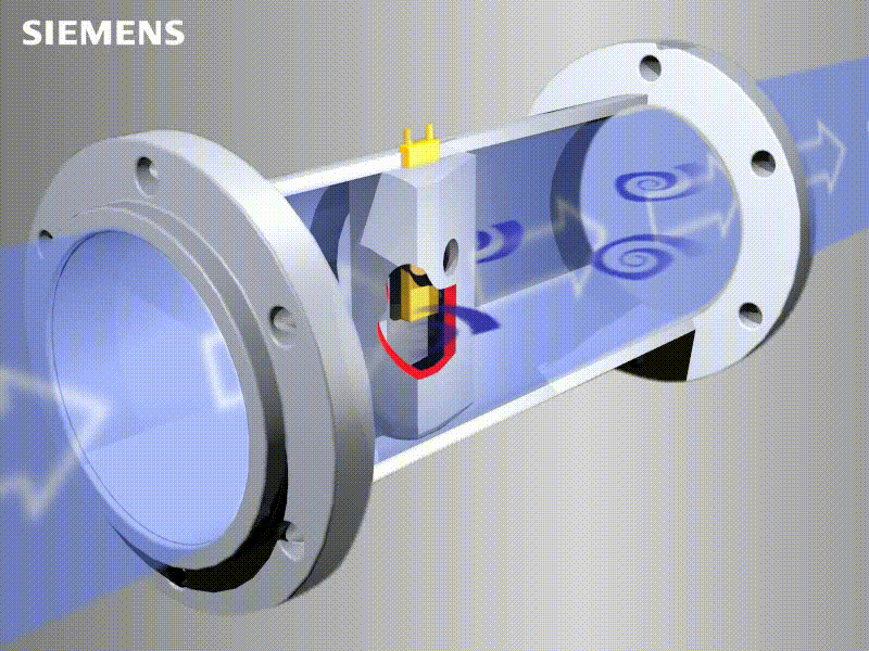 El medidor de tipo vortex se basa en el fenómeno de generación de vórtices llamado Karman vortex street. Cuando un fluido pasa por un cuerpo no aerodinámico, este se separa y genera torbellinos o vórtices que se alternan a cada lado de un obstáculo. Los vórtices que se generan tienen dos características principales: se generan de forma alternada, primero a un lado y luego en el opuesto del obstáculo y la frecuencia con la que se generan, es proporcional a la velocidad del fluido.