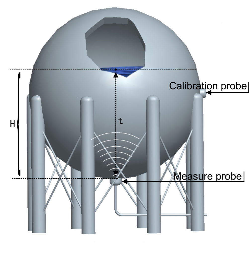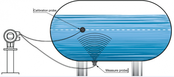 Sensor ultrasonico de nivel no intrusivo. La sonda se ubica en el fondo del tanque. El sistema principal es la tecnología especial de procesamiento de ultrasonido, que utiliza el método SK (algoritmo patentado) para calcular el valor de nivel y la salida de la señal remota.